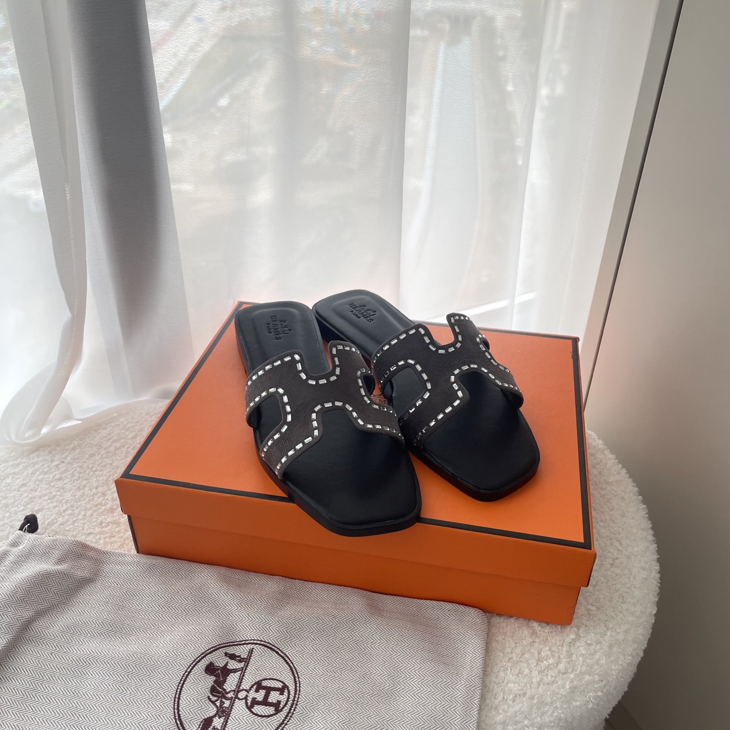 25SS Square diamond H slippers